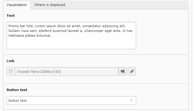Button text: Ak je vyplnený, zobrazí sa tlačítko na stránke, treba mať aj vyplnený Link